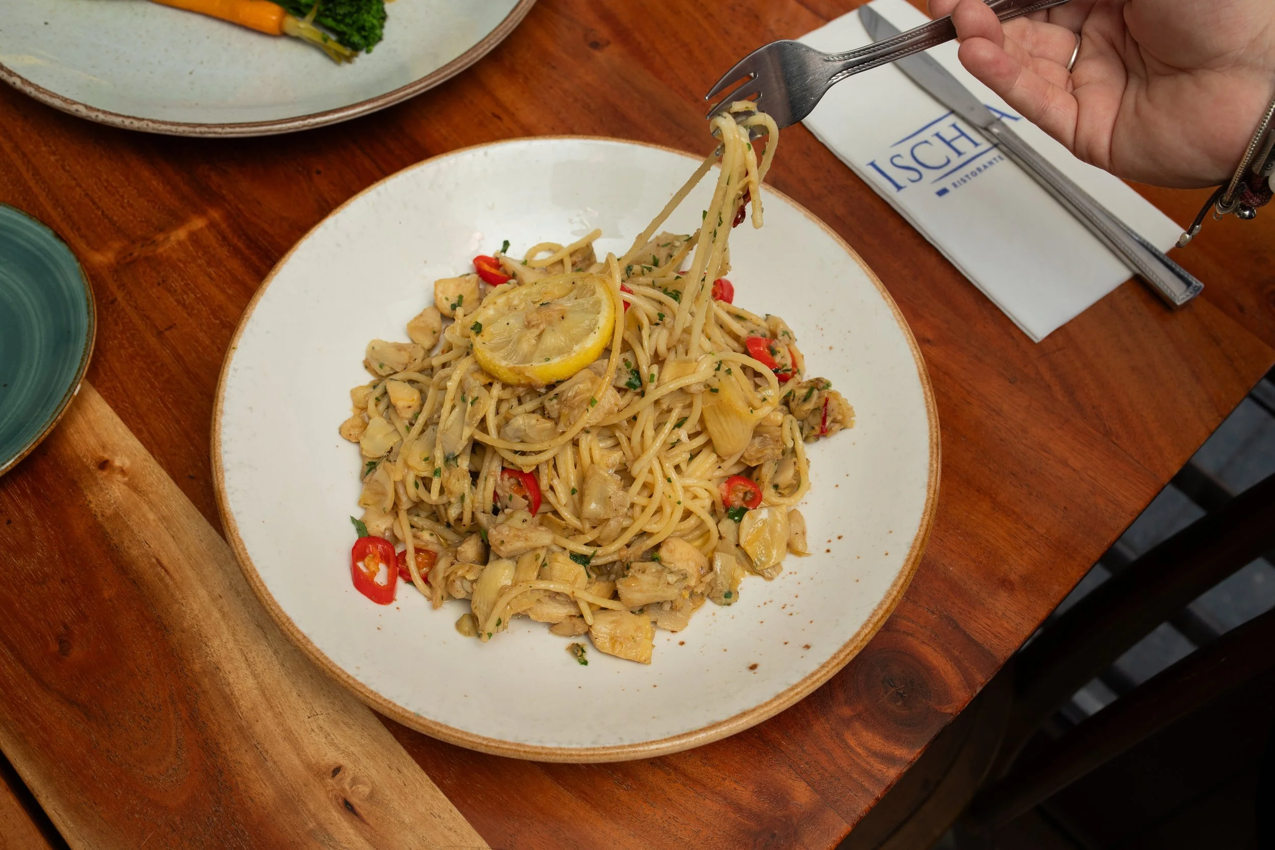Garlic, chilli, anchovies, lemon in an aglio e olio sauce